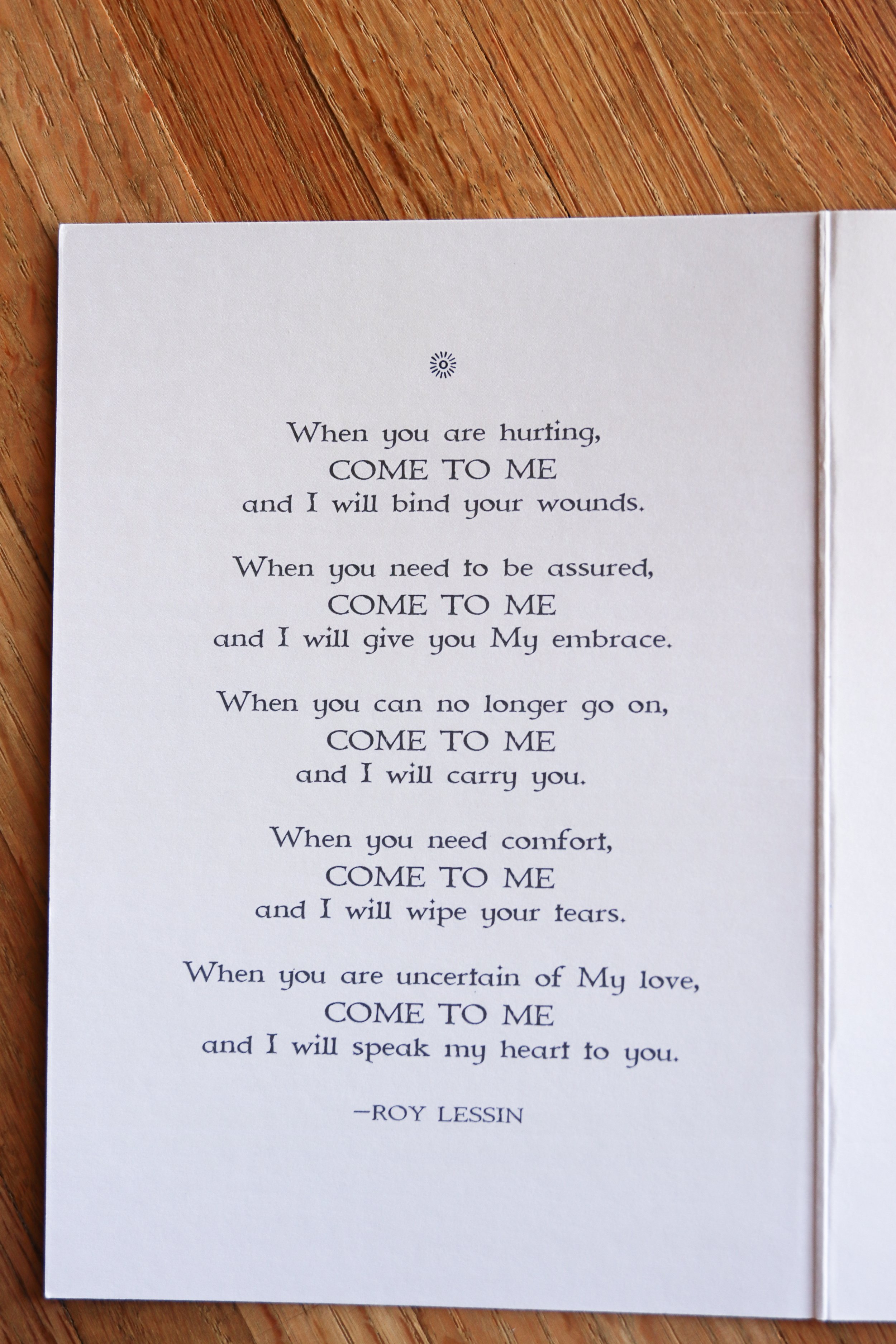 When you need to be assured, COME TO ME and I will give you My embrace.